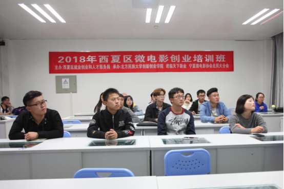 為認(rèn)真貫徹落實(shí)黨的十九大精神,進(jìn)一步提升以創(chuàng)新創(chuàng)業(yè)帶動(dòng)更多就業(yè),擴(kuò)大就業(yè)和改善民生,全力做好創(chuàng)業(yè)幫扶和服務(wù),促進(jìn)社會(huì)和諧穩(wěn)定,由西夏區(qū)就業(yè)創(chuàng)業(yè)和人才服務(wù)局主辦,北方民族大學(xué)創(chuàng)新創(chuàng)業(yè)學(xué)院、君臨天下影業(yè)、寧夏微電影協(xié)會(huì)北民大分會(huì)承辦的首屆“2018年西夏區(qū)微電影創(chuàng)業(yè)培訓(xùn)”于昨天在北方民族大學(xué)創(chuàng)新創(chuàng)業(yè)學(xué)院正式開班。